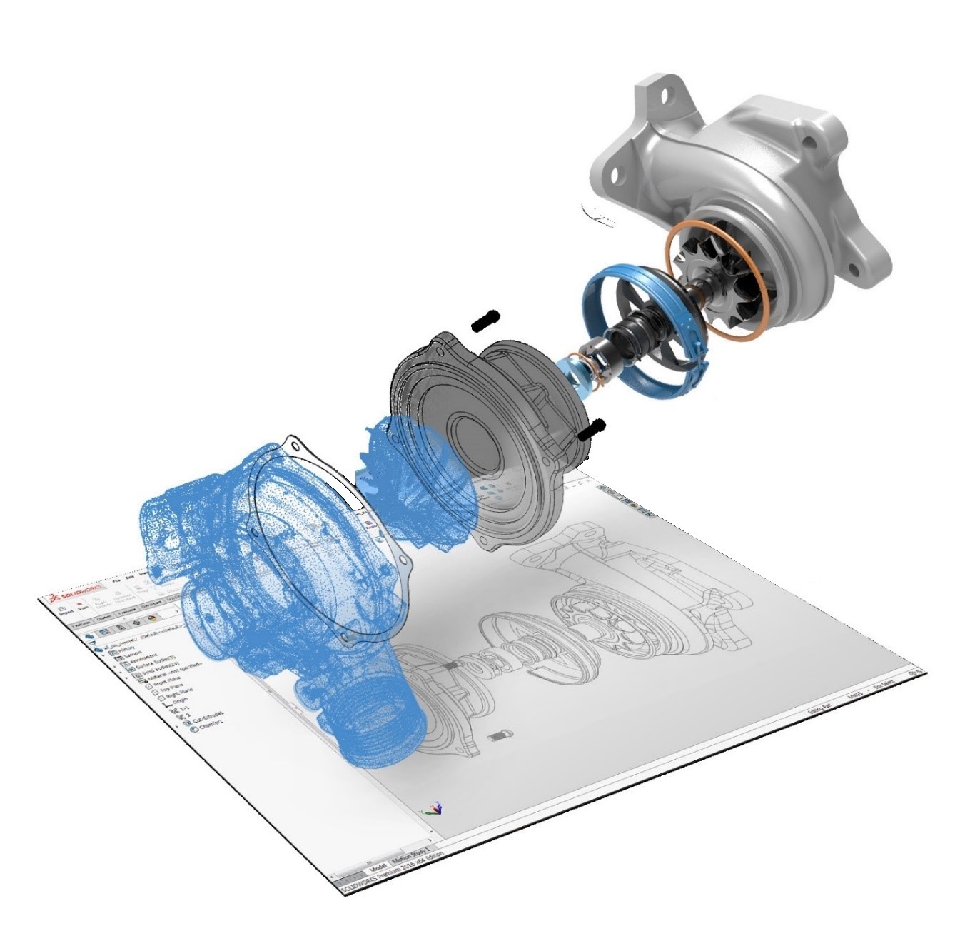 Geomagic for SOLIDWORKS обеспечивает в одной программной среде создание модели с помощью 3D-сканера, обработку многоугольной полигональной сетки (stl и др.) и проектирование полноценной параметрической твердотельной модели с помощью набора встроенных в ПО инструментов: